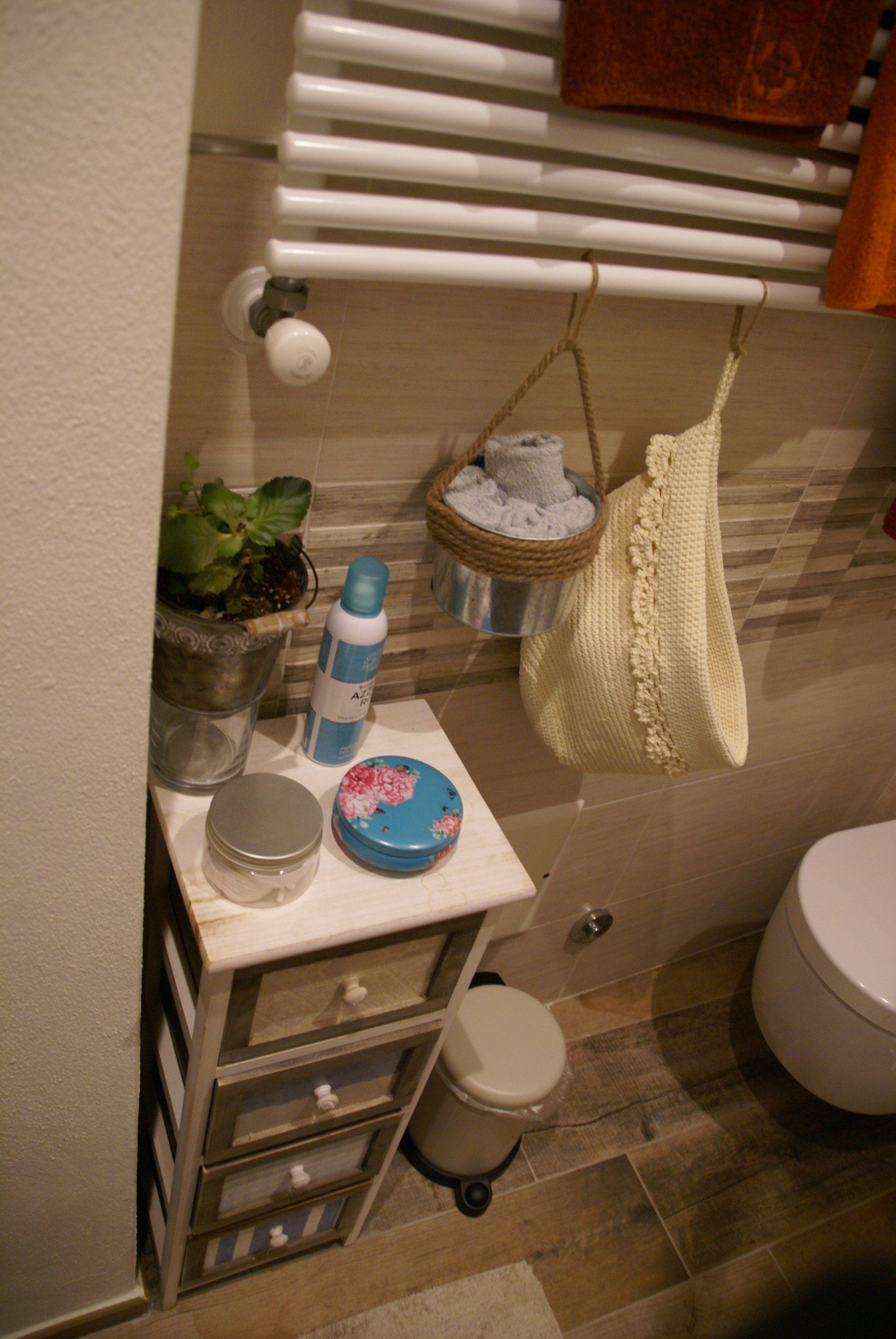 The small bathroom has a corner shower, sink and toilet. The bidet is not provided.
