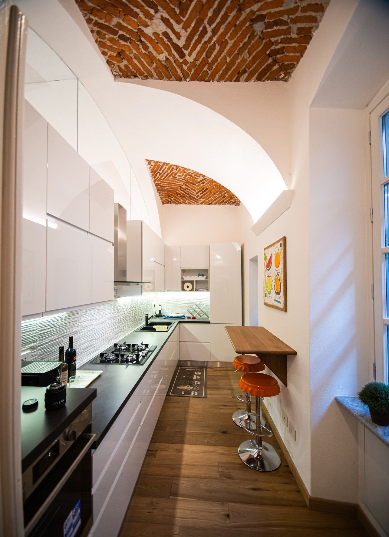 L'attenta e minuziosa ristrutturazione ha riportato aria prestigiosa e nobile all'ambiente, esaltando i soffitti a crociera con mattoni disposti a taglio, che testimoniano la disponibilità di ricchezza della famiglia. I pavimenti in legno e i dettagli delle porte interne originali e le nicchie ricavate danno calore e personalità