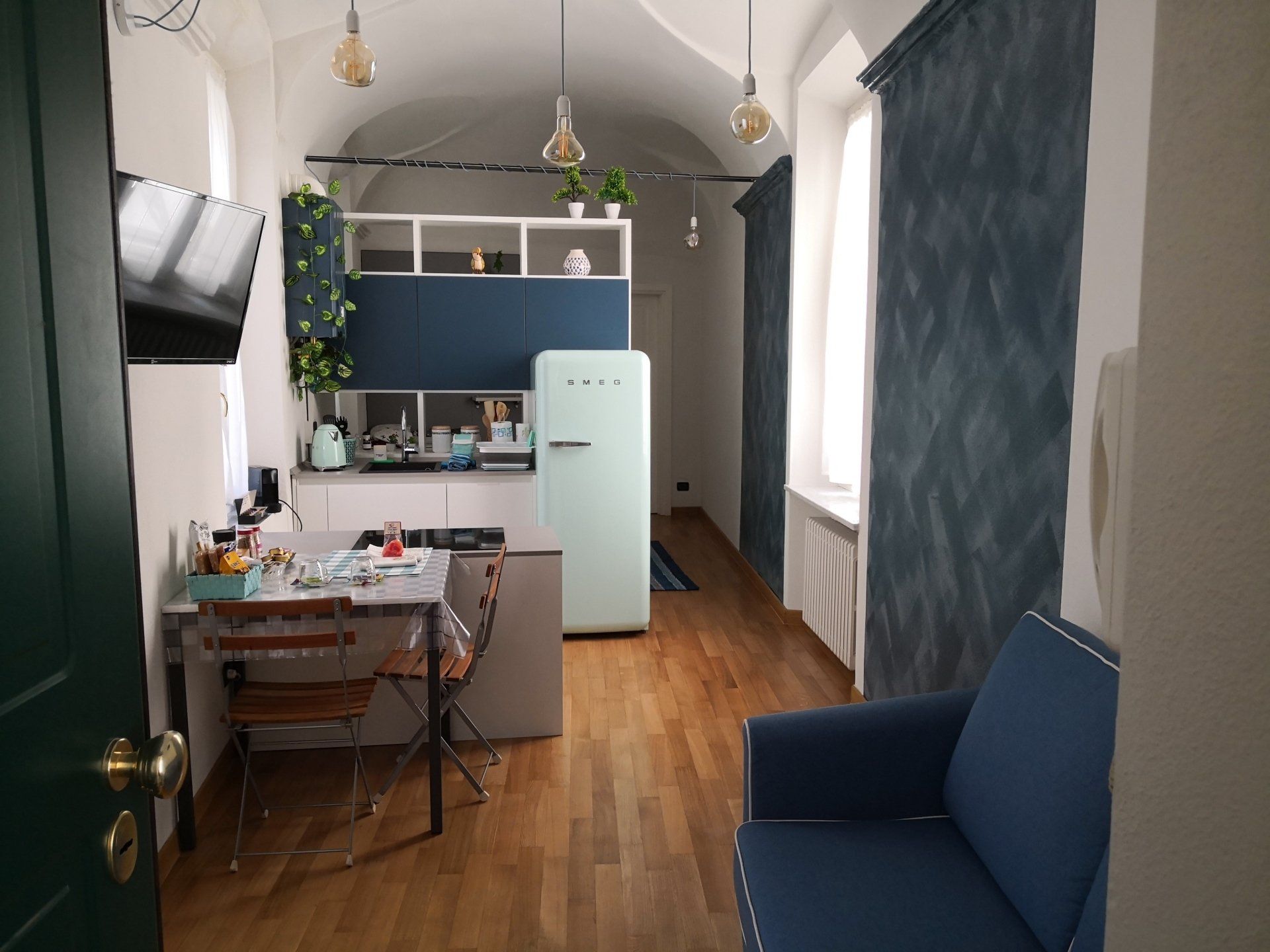 Delizioso monolocale appena ristrutturato nel cuore del centro storico di Cuneo, a quattro passi dalla centrale Via Roma e dai migliori locali e ristoranti. La divisione degli spazi, l'ampiezza delle finestre, i colori e i mobili di design danno una sensazione di fresco ed accogliente. La illuminazione modulabile a scelta risalta il soffitto a volta curva e le lampade industrial design rischiarano l'ambiente con atmosfera vintage. C'è anche un balcone su cortiletto interno per i fumatori., molto grazioso e ben ristrutturato.