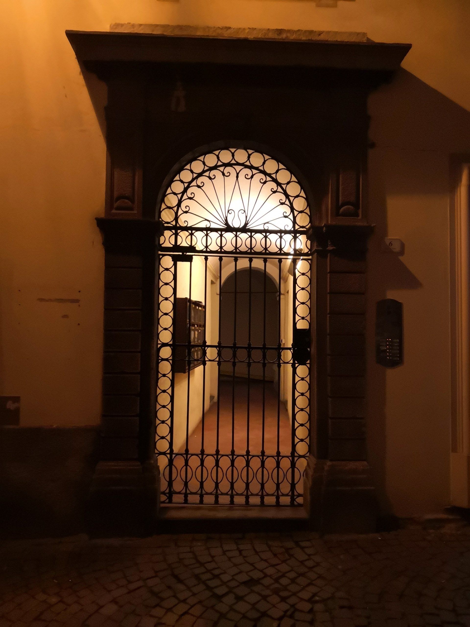 Loft in a magnificent frescoed dome from 1710. The apartment is the result of a restoration that has restored the octagonal hall of 60 square meters to its splendor. You will stay under the gaze of the God Apollo, his Muses and curious cherubs. In the one environment a comfortable sofa, a dining table, a bed with a wardrobe to breathe the air of the past. Imagine the story that these walls have seen in the past. Complete a kitchen, a bathroom recovered under the arched brick vaults. The building is known as Palazzo Rubatti di Torricella or Palazzo Tornaforte. Built in the mid-seventeenth century, the architect of the work is Francesco Gallo, author of over 80 buildings in southern Piedmont including the Sanctuary of Vicoforte "Magnificat". The original owners, the Rubatti, are an ancient decurional family of the Cuneo stalls, present in the list of 1535 with a noble chapel in San Francesco. The Count Carlo Massimiliano and his wife, the noble Violante Maria De Morri, daughter of the Counts De Morri of Castelmagno, live here. Subsequently the noble Barbara Violante Rubatti and her husband Marquis Della Valle Di Clavesana. And finally (just to name a few) the noble Paola Felicita Della Valle and her husband, the famous Count Saverio Bruno di Tornaforte, a heroic militia general. Here in 1809 Pope Pius VII visited the old Count of Tornefort during his journey, prisoner of Napoleon. In short, this show has seen 350 years of history, illustrious characters and magnificent parties. It is precisely the concert of the Muses, a theme chosen by the Rubatti to decorate the vault of the hall of honor, to suggest its use. In 1710 the Swiss painter Giovan Francesco Gaggini, who was working at the Church of the Holy Cross in Cuneo together with the Pozzi brothers, authors of the paintings, was called to perform the work. Clio, Euterpe, Thalia, Melpomene, Tersicore, Erato, Polimnia, Urania and Calliope, accompanied by a correspondence of putti, observe the God Apollo, isolated in the center of the composition, wrapped in a large drapery, crowned with laurel, while with one hand greets and with the other holds the lyre. The scene announces the beginning of an imminent concert: the muses and the putti are ready to play and sing, the instruments tuned, the scores open, while Apollo, conductor of the orchestra, with the gesture of the arm will give the start. The scene is set in the sky, between vaporous white-blue-yellowish-pink clouds. A rich shaped balustrade surrounds the opening towards the sky, highlighting the illusory breaking of the ceiling, while the scenographic painted architectural structure continues below with ample volutes, fake marbles and oval windows, vases full of fruits, garlands, festoons and branches foliaceous. In the living room you can see an original painting restored (oil on canvas) of the heraldic coat of arms of the Rubatti-De Morri alliance. The occasion is precisely the marriage that was celebrated in the Parish Church of Santa Maria del Bosco, Cathedral of Cuneo, on 3 February 1694, with the motto Tas Stil. The saloon was recovered and brought as much as possible to the original of the time. In the center, a fifth contains a walk-in closet and shelters the double bed. A sofa bed, a glass table with chairs and an open bookcase complete the deliberately minimalist furniture. In other spaces you will find a fully equipped kitchen with fridge, induction hob, dishwasher, "Nespresso" coffee machine. In a small storage room also a comfortable washing machine. Bathroom with shower, toilet and comfortable vertical heated towel rail. La Cupola is located on the third floor of the building, without a lift. The stairs are very large and accessible.
