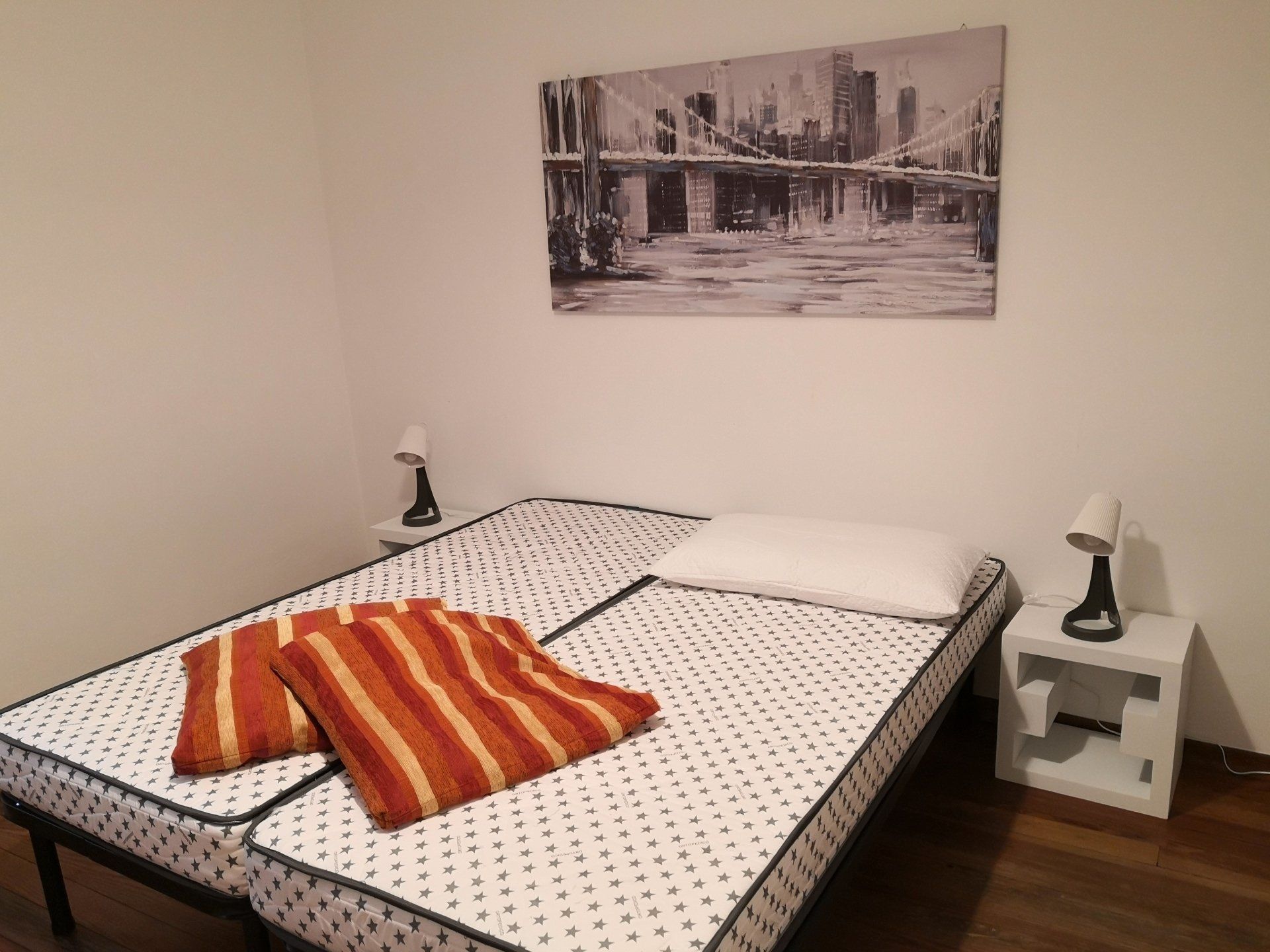 Nella prima camera da notte 2 letti singoli, facilmente un unibili a matrimoniale, 1 armadio e 2 comodini. Una bella portafinestra dà accesso ad un piccolo ma comodo cortiletto privato.