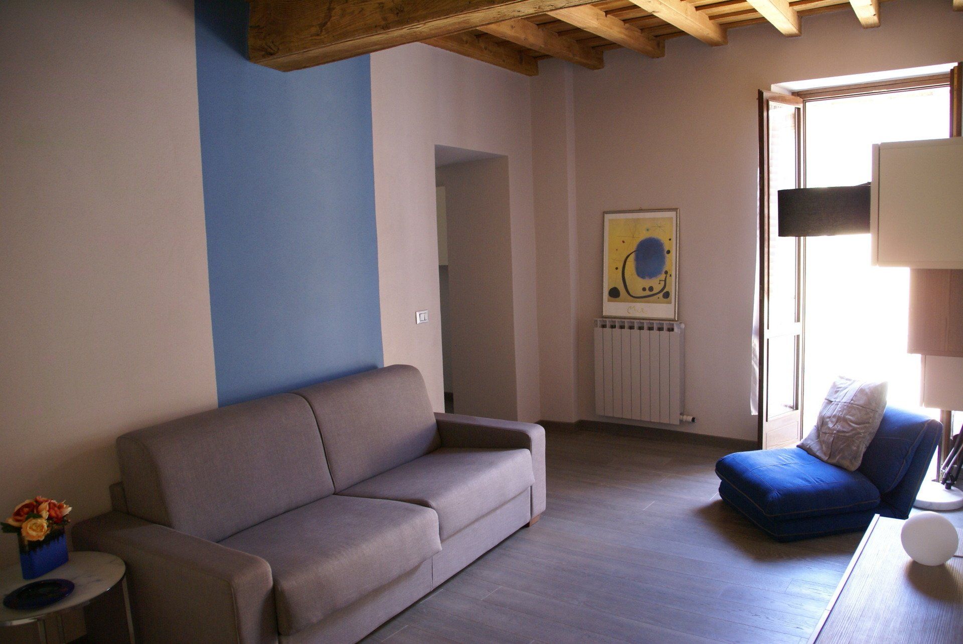 Loft in a magnificent frescoed dome from 1710. The apartment is the result of a restoration that has restored the octagonal hall of 60 square meters to its splendor. You will stay under the gaze of the God Apollo, his Muses and curious cherubs. In the one environment a comfortable sofa, a dining table, a bed with a wardrobe to breathe the air of the past. Imagine the story that these walls have seen in the past. Complete a kitchen, a bathroom recovered under the arched brick vaults. The building is known as Palazzo Rubatti di Torricella or Palazzo Tornaforte. Built in the mid-seventeenth century, the architect of the work is Francesco Gallo, author of over 80 buildings in southern Piedmont including the Sanctuary of Vicoforte "Magnificat". The original owners, the Rubatti, are an ancient decurional family of the Cuneo stalls, present in the list of 1535 with a noble chapel in San Francesco. The Count Carlo Massimiliano and his wife, the noble Violante Maria De Morri, daughter of the Counts De Morri of Castelmagno, live here. Subsequently the noble Barbara Violante Rubatti and her husband Marquis Della Valle Di Clavesana. And finally (just to name a few) the noble Paola Felicita Della Valle and her husband, the famous Count Saverio Bruno di Tornaforte, a heroic militia general. Here in 1809 Pope Pius VII visited the old Count of Tornefort during his journey, prisoner of Napoleon. In short, this show has seen 350 years of history, illustrious characters and magnificent parties. It is precisely the concert of the Muses, a theme chosen by the Rubatti to decorate the vault of the hall of honor, to suggest its use. In 1710 the Swiss painter Giovan Francesco Gaggini, who was working at the Church of the Holy Cross in Cuneo together with the Pozzi brothers, authors of the paintings, was called to perform the work. Clio, Euterpe, Thalia, Melpomene, Tersicore, Erato, Polimnia, Urania and Calliope, accompanied by a correspondence of putti, observe the God Apollo, isolated in the center of the composition, wrapped in a large drapery, crowned with laurel, while with one hand greets and with the other holds the lyre. The scene announces the beginning of an imminent concert: the muses and the putti are ready to play and sing, the instruments tuned, the scores open, while Apollo, conductor of the orchestra, with the gesture of the arm will give the start. The scene is set in the sky, between vaporous white-blue-yellowish-pink clouds. A rich shaped balustrade surrounds the opening towards the sky, highlighting the illusory breaking of the ceiling, while the scenographic painted architectural structure continues below with ample volutes, fake marbles and oval windows, vases full of fruits, garlands, festoons and branches foliaceous. In the living room you can see an original painting restored (oil on canvas) of the heraldic coat of arms of the Rubatti-De Morri alliance. The occasion is precisely the marriage that was celebrated in the Parish Church of Santa Maria del Bosco, Cathedral of Cuneo, on 3 February 1694, with the motto Tas Stil. The saloon was recovered and brought as much as possible to the original of the time. In the center, a fifth contains a walk-in closet and shelters the double bed. A sofa bed, a glass table with chairs and an open bookcase complete the deliberately minimalist furniture. In other spaces you will find a fully equipped kitchen with fridge, induction hob, dishwasher, "Nespresso" coffee machine. In a small storage room also a comfortable washing machine. Bathroom with shower, toilet and comfortable vertical heated towel rail. La Cupola is located on the third floor of the building, without a lift. The stairs are very large and accessible.