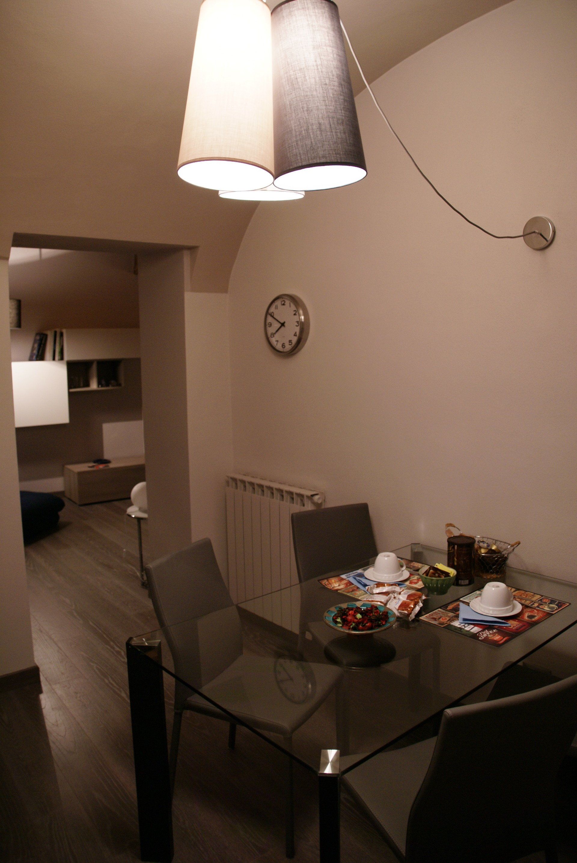 Loft in una magnifica cupola affrescata del 1710. L'appartamento è il risultato di un'opera di restauro che ha riportato al suo splendore il salone ottagonale di 60 mq. Soggiornerete sotto lo sguardo del Dio Apollo, le sue Muse e curiosi putti. Nell'unico ambiente un comodo divano, un tavolo pranzo, un letto con cabina armadio per respirare l'aria del passato. Immaginare la storia che questi muri hanno visto passare. Completano una cucina, un bagno recuperati sotto le volte ad arco di mattoni. L'immobile è conosciuto come Palazzo Rubatti di Torricella o Palazzo Tornaforte. Costruito nella metà del XVII secolo, l'architetto dell'opera è Francesco Gallo, autore di oltre 80 edifici nel Piemonte meridionale tra cui il Santuario di Vicoforte "Magnificat". I proprietari originali, i Rubatti, sono un'antica famiglia decurionale de platea di Cuneo, presente nell'elenco del 1535 con cappella gentilizia in San Francesco. In questo Palazzo trovano dimora Il Conte Carlo Massimiliano e la sua sposa la nobile Violante Maria De Morri, figlia dei Conti De Morri di Castelmagno. Successivamente la nobile Barbara Violante Rubatti e il marito Marchese Della Valle Di Clavesana. Ed infine (solo per citarne alcuni) la nobile Paola Felicita Della Valle ed il marito, il famoso Conte Saverio Bruno di Tornaforte, eroico Generale di milizia. Qui nel 1809 il Papa Pio VII fa visita al vecchio Conte di Tornefort durante il suo viaggio, prigioniero di Napoleone. Insomma questo salone ha visto 350 anni di storia, personaggi illustri e magnifiche feste. E' proprio il concerto delle Muse, tema scelto dai Rubatti per decorare la volta del salone d'onore, a suggerirne l'uso. Nel 1710 fu chiamato ad eseguire l'opera il pittore svizzero Giovan Francesco Gaggini, che stava lavorando alla Chiesa della Santa Croce a Cuneo insieme ai fratelli Pozzi, autori delle quadrature. Clio, Euterpe, Thalia, Melpomene, Tersicore, Erato, Polimnia, Urania e Calliope, accompagnate da un carteggio di putti, osservano il Dio Apollo, isolato al centro della composizione, avvolto in un ampio panneggio, coronato di alloro, mentre con una mano saluta e con l'altra tiene la lira. La scena annuncia l'inizio di un imminente concerto: le muse ed i putti sono pronti a suonare e cantare, gli strumenti accordati, gli spartiti aperti, mentre Apollo, direttore di orchestra, col gesto del braccio ne darà il via. La scena è ambientata in cielo, tra vaporose nubi bianco-azzurrine-gialline-rosate. Una ricca balaustra sagomata contorna l'apertura verso il cielo, mettendone in risalto l'illusivo sfondamento del soffitto, mentre lo scenografico apparato architettonico dipinto prosegue inferiormente con ampie volute, finti marmi e finestre ovali, vasi colmi di frutti, ghirlande, festoni e tralci fogliacei. Nel salone potrete osservare un dipinto originale restaurato (olio su tela) dello stemma araldico dell'arma di alleanza Rubatti-De Morri. L'occasione è appunto il matrimonio che fu celebrato nella Chiesa Parrocchiale di Santa Maria del Bosco, Duomo di Cuneo, il 3 febbraio 1694, con il motto Tas Stil. Il salone è stato recuperato e portato il più possibile all' originale dell'epoca. In centro, una quinta contiene una cabina armadio e dà riparo al letto matrimoniale. Un divano letto, un tavolo in cristallo con sedie ed una libreria a giorno completano l'arredamento volutamente minimalista. In altri spazi troverete una cucina completamente attrezzata con frigorifero, piano cottura ad induzione, lavastoviglie, macchinetta caffè "Nespresso". In un piccolo ripostiglio anche una comoda lavatrice. Bagno con doccia, wc e comodo termoarredo verticale. La Cupola si trova al terzo piano dell'edificio, senza ascensore. Le scale sono molto ampie ed accessibili.