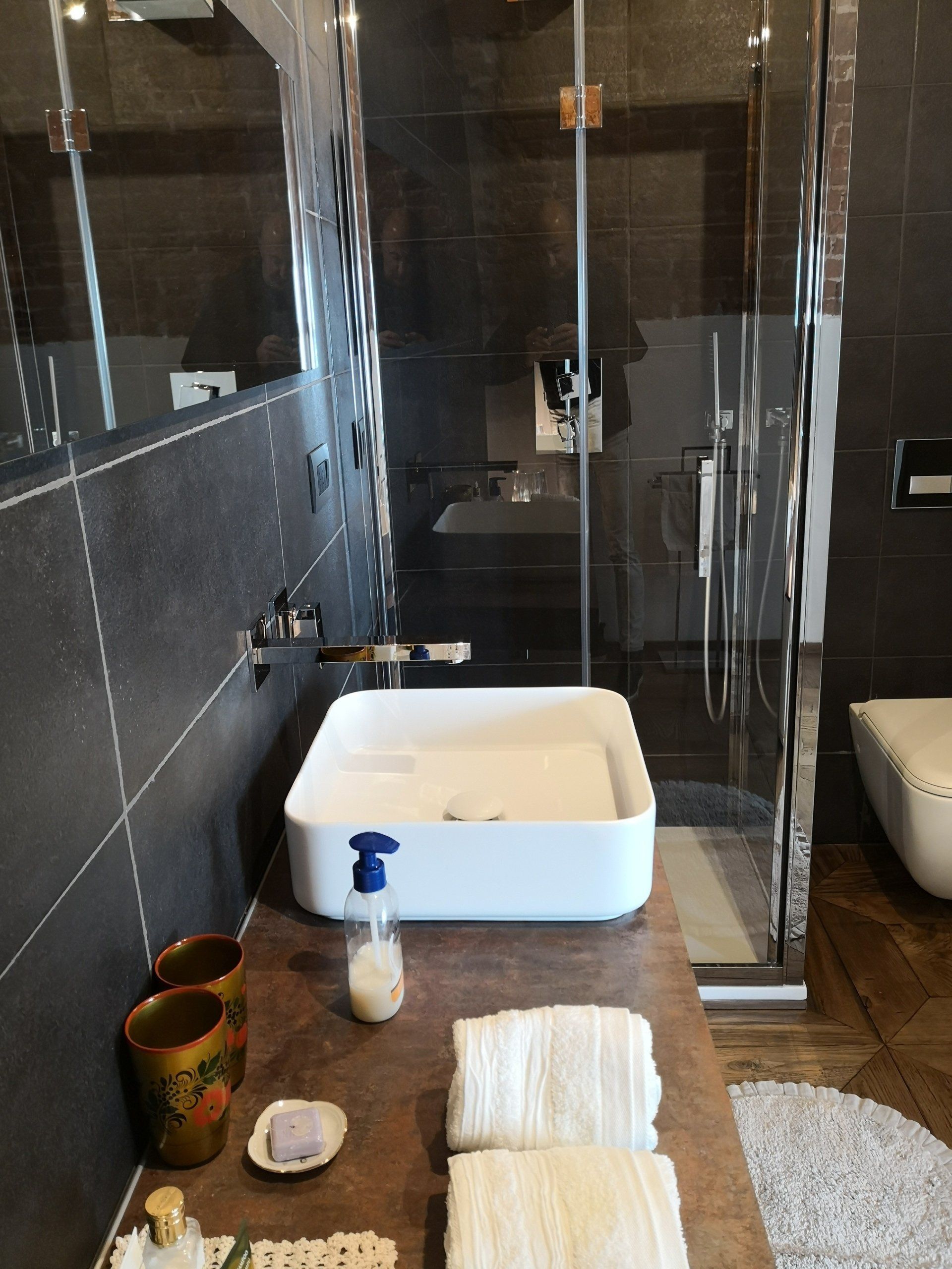 We are located in the heart of the historic center of Cuneo, in the street that takes the name of Count Carlo Massimiliano Roero, husband of the famous Rosa Ignazia Diodata Saluzzo, an appreciated poetess of the early 1800s. The entire building was owned by the Count and had the classic construction form of the time, with a central courtyard with warehouses and stables on the ground floor and manor lodgings on the first floor. Our apartment overlooks Via Carlo Manfredi di Luserna and is very bright compared to the standard of the old part of the city. The careful and meticulous renovation has brought a prestigious and noble air back to the environment, enhancing the cross ceilings with cut bricks, which testify to the availability of wealth of the family. The wooden floors and the details of the original interior doors and the niches obtained give warmth and personality In the apartment you will find a beautiful kitchen with all the necessary appliances, a large fridge with freezer, a traditional oven, a microwave, a 4-burner hob and a dishwasher with a generous worktop. A practical shelf with nice stools for a quick breakfast or snack. The majestic living room welcomes you with a large glass dining table, a generously sized L-shaped sofa to pass the time chatting or watching the big TV. A glass door allows the passage to the small but beautiful balcony on the street. The master bedroom, furnished as a suite, has a beautiful walk-in closet with mirrored glass and friction sliding door, 2 bedside tables and a period desk. The large and comfortable double bed. Here too we find a small but lovely balcony. In the large bathroom there is space for the shower, the toilet and the bidet and a window to give brightness and air to the environment. The second bedroom has a large wardrobe with doors, a design glass table, a vintage bathroom furniture adapted to a night table. French bed with a square and a half. Nice and spacious bathroom, with corner shower, toilet and bidet. The peculiarity lies in the walls that are not full height, but end with glass on the ceiling, to give a feeling of greater space to the rooms and natural light. At 100 meters we find Via Roma and Piazza Virginio where the Friday market and numerous events take place under the central roof. Also nearby is the complex of San Francesco and its museum.