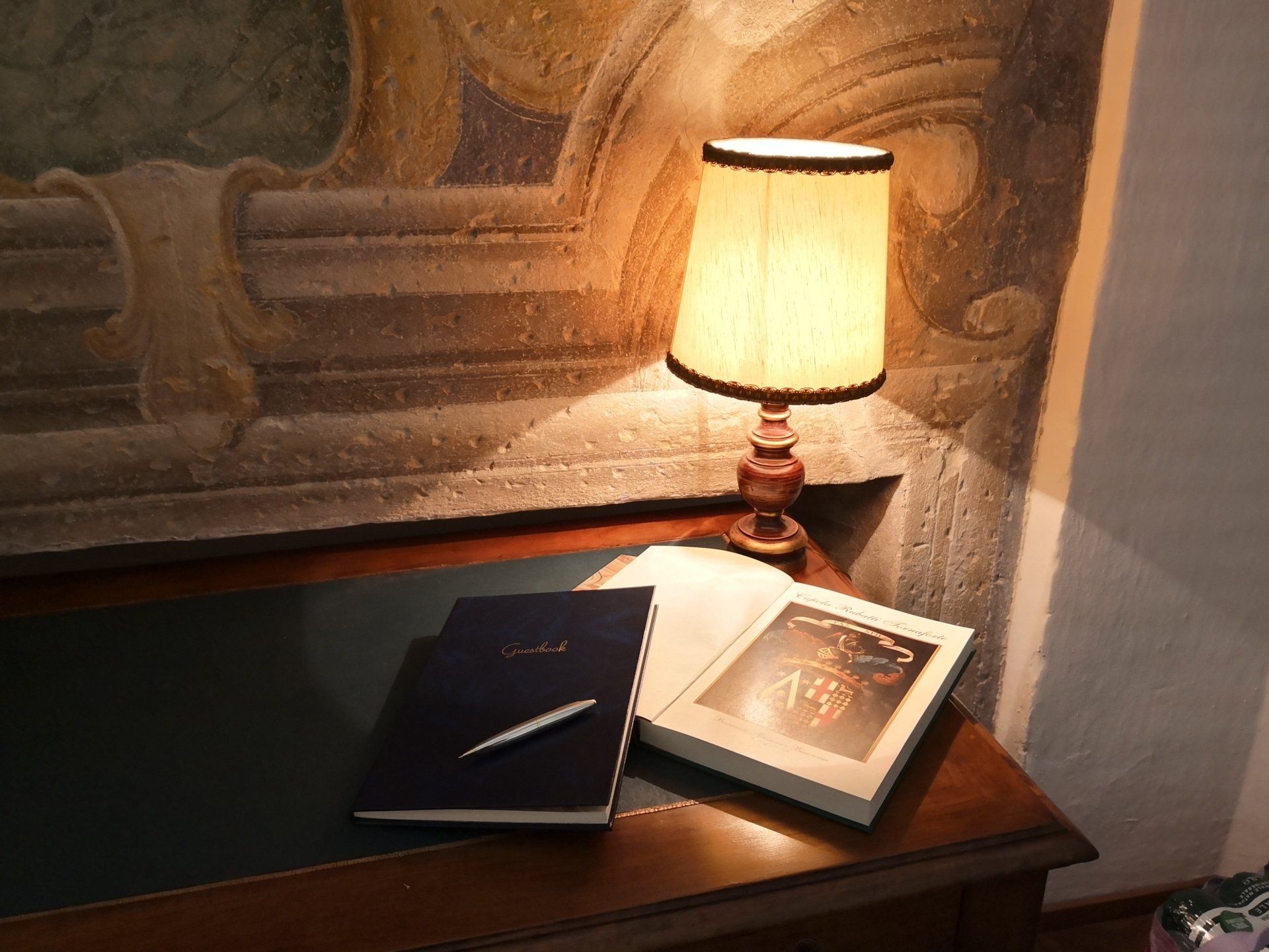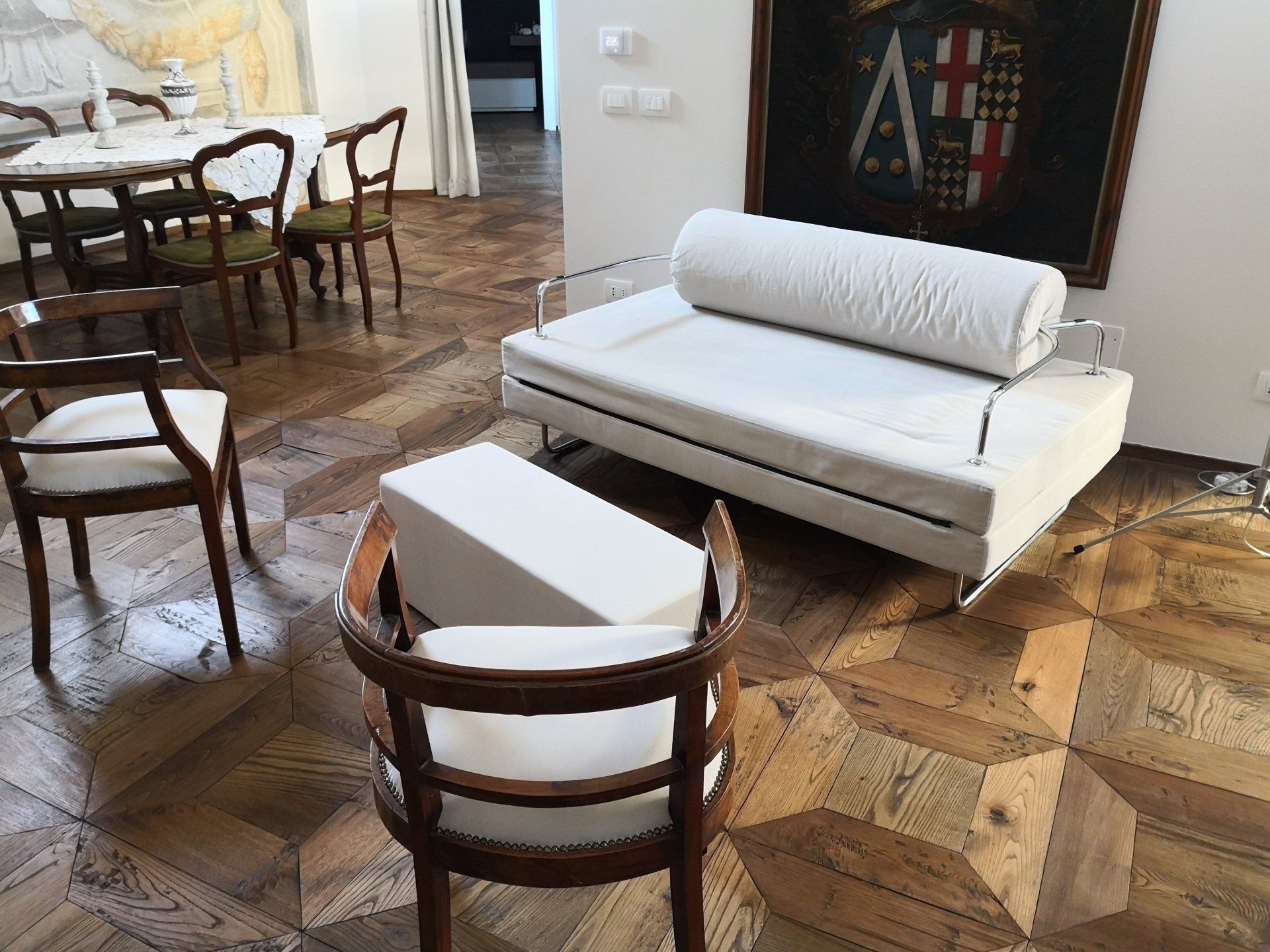 Nel salone potrete osservare un dipinto originale restaurato (olio su tela) dello stemma araldico dell'arma di alleanza Rubatti-De Morri. L'occasione è appunto il matrimonio che fu celebrato nella Chiesa Parrocchiale di Santa Maria del Bosco, Duomo di Cuneo, il 3 febbraio 1694, con il motto Tas Stil.